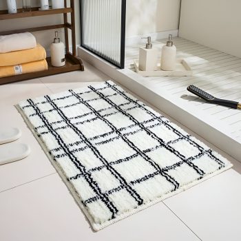 Soft Geometric Tufted Anti-Slip Bath Mat – Black & White Grid Rug
