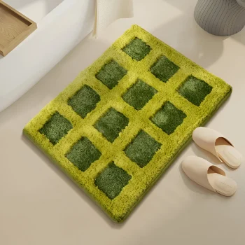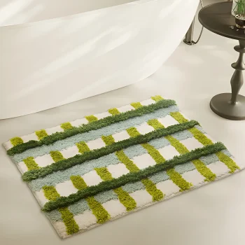 Soft Tufted Green Field Bath Rug – Anti-Slip Decorative Floor Mat