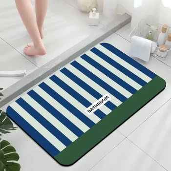 Royal Blue Star Striped Non-Slip Memory Foam Bath Mat
