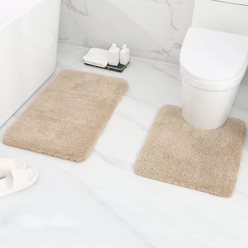 2-Piece Plush Bathroom Mat Set – Soft Absorbent Non-Slip Rugs