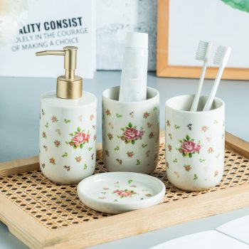 Nordic Minimalist Ceramic Bathroom Set with Marble Accents