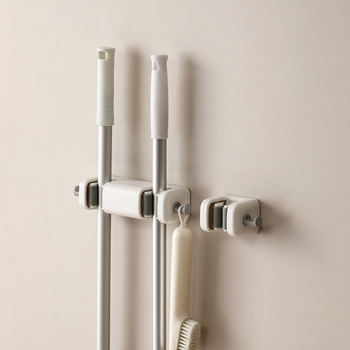 Wall-Mounted Mop & Broom Holder Rack with Hooks – No-Drill Organizer