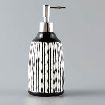 Elegant European Ceramic Lotion Bottle – Black & White Plaid Soap Dispenser