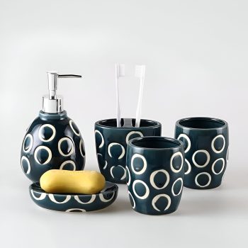 Deep Blue Ice-Cracked Ceramic Bathroom Wash Set