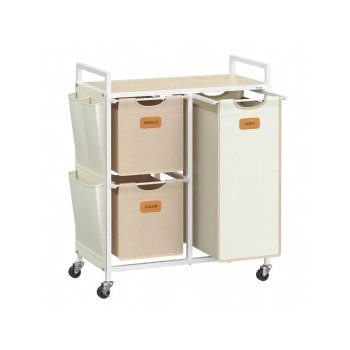 3-Compartment Laundry Hamper with Shelves & Rolling Cart – 26.4 Gal Capacity