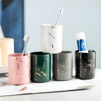 Minimalist Ceramic Bathroom Cup for Toothbrush, Toothpaste & Mouthwash