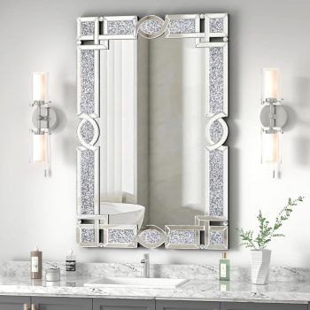 Large Crystal Diamond Crush Silver Wall Mirror – Elegant Vanity & Home Décor