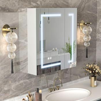 LED Lighted Bathroom Medicine Cabinet with Mirror & Defogger, 2-Door Wall Mount
