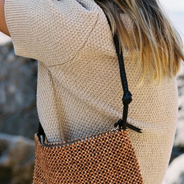 Beaded Shoulder Bag – Chic Handbag with Knot Strap & Zipper Pocket