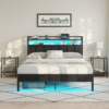 Upgrade your bedroom with a bed frame that does more than just hold your mattress. This metal bed frame with upholstered headboard combines sleek style, innovative features, and lasting durability. Designed with built-in power outlets, ambient LED lighting, and spacious storage, it’s the perfect centerpiece for any modern bedroom.