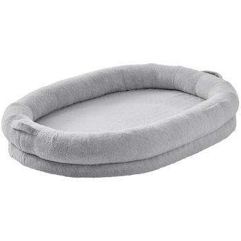 Human Dog Bed for Adults with Washable Faux Rabbit Fur & Orthopedic Foam, Grey