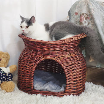 2-Tier Rattan Wicker Elevated Cat Bed with Cushions