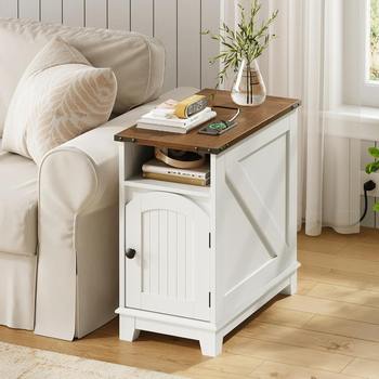 Narrow Farmhouse End Table with Charging Station