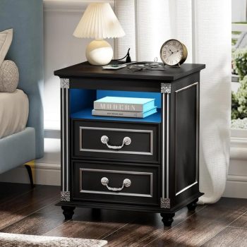 Smart Nightstand with Wireless Charging & LED Light 3 Drawers