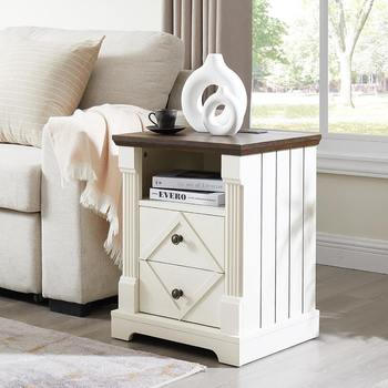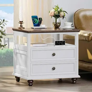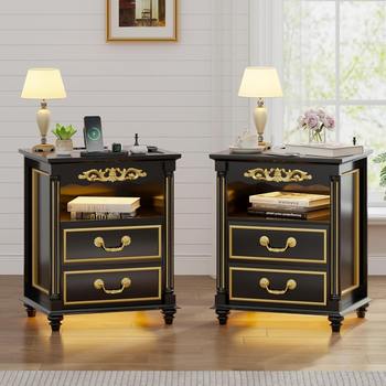 Modern LED Nightstand with Charging Station & 2 Drawers