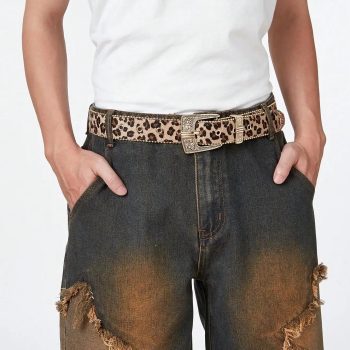 Men’s Leopard Engraved Vintage Buckle Jeans Belt – Casual Statement Style
