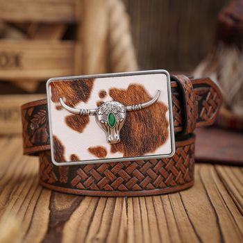 Men’s Premium Genuine Leather Belt – Vintage Cowboy Retro Buckle
