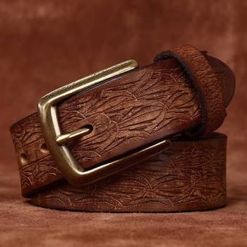 High-Quality Cowhide Leather Casual Jeans Belt with Copper Buckle