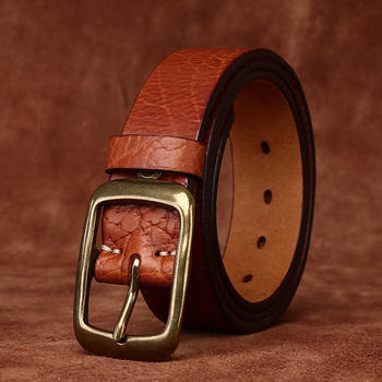Vintage Full-Grain Cowhide Leather Belt with Handmade Copper Buckle