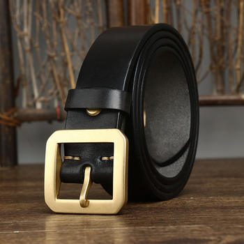 Men’s Genuine Leather Belt with Solid Copper Pin Buckle