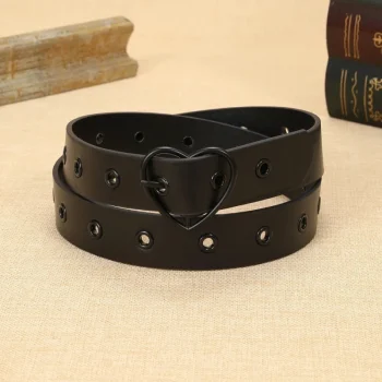 Elegant Dark Leather Belt for Women with Heart Detail – Versatile Everyday Style