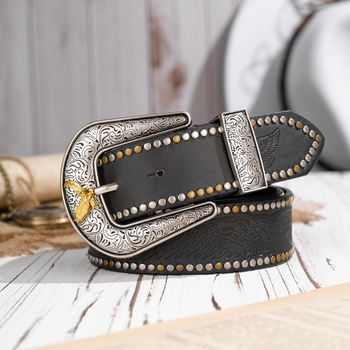 Vintage Western Cowboy Floral Engraved Buckle PU Leather Belt