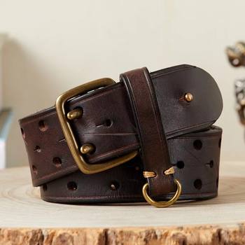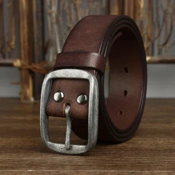 Thick Retro Genuine Leather Men’s Belt – Copper Buckle Vintage Fashion
