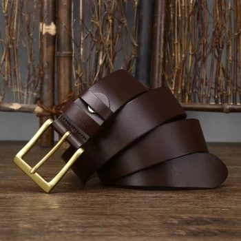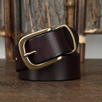 Premium 3.8CM Cowhide Leather Belt for Men with Retro Brass Copper Buckle