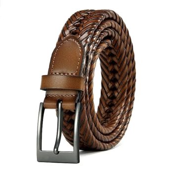 Genuine Leather Braided Belt with Gold Pin Buckle – Vintage Casual Style