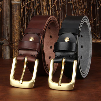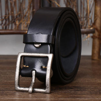 Men’s Genuine Leather Belt – 1.5 Inch Wide, Thick Copper Buckle, Retro Casual Style