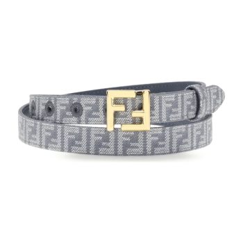 FendiBlue FF Denim Belt with Vintage Gold Buckle
