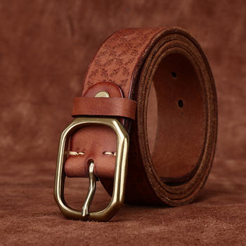 Luxury Genuine Leather Belt for Men – Retro Brass Buckle 1.5 Inch Wide