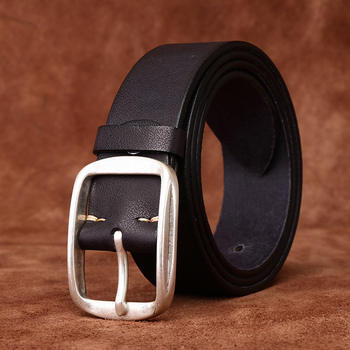 Men’s Genuine Cowhide Leather Belt with Silver Pin Buckle – Retro Cowboy Style
