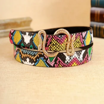 Women’s Colorful Snake Pattern Belt with Gold Snake Buckle