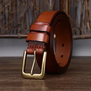 Men’s Handmade Full-Grain Leather Belt with Solid Copper Buckle