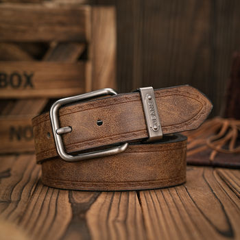Men’s Premium Leather Belt with Large Pin & Automatic Buckle – Casual Jeans Strap