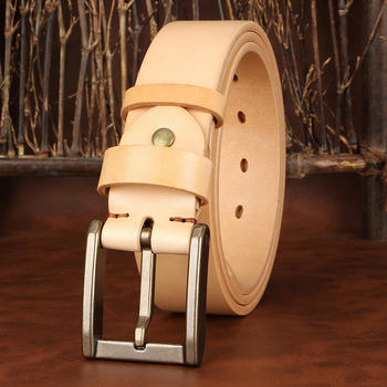 Men’s Retro Full-Grain Leather Belt with Vintage Pin Buckle – 1.3 in