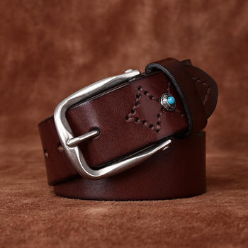 Men’s 1.5 Inch Genuine Cowhide Leather Belt with Classic Pin Buckle