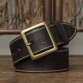 Men’s Retro Embossed Cowboy Leather Belt with Copper Pin Buckle – 1.5 in