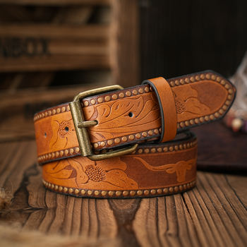 Genuine Cowhide Leather Belt with Solid Brass Buckle for Men & Women