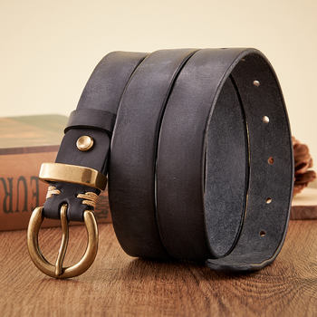 Handmade Retro Copper Buckle Full-Grain Leather Men’s Jeans Belt