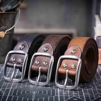 Vintage Genuine Leather Cowhide Belt with Stainless Steel Buckle