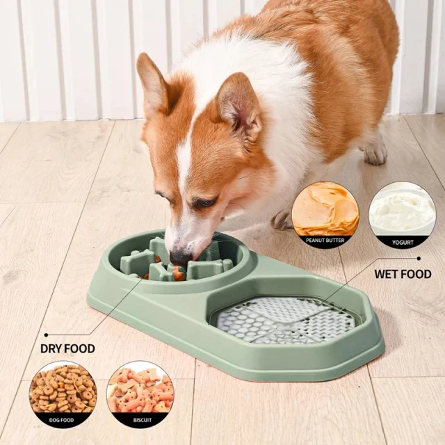 Unlike ordinary bowls, this feeder combines separate dry and wet food sections in one stable design. The built-in lick pad won’t slide out or get chewed up, keeping the feeding area clean and stress-free. The base is fitted with six non-slip rubber feet to prevent skidding across the floor, while food-grade, BPA-free materials ensure every bite is safe for your pet.