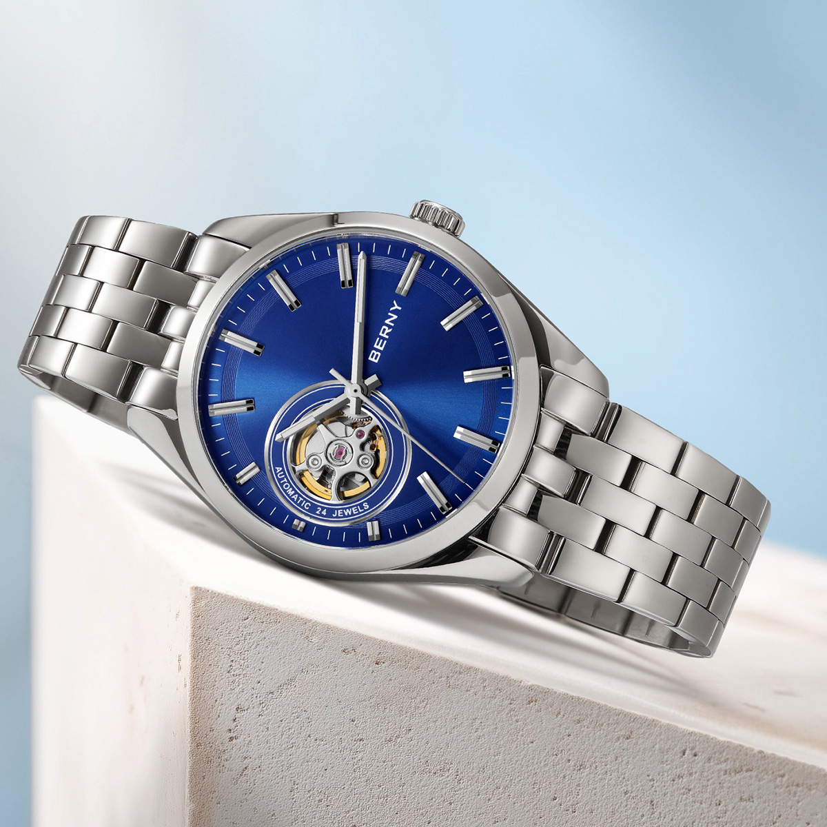 This watch is best worn as a business and dress timepiece, complementing suits, formal wear, and elegant casual outfits. Its versatility makes it suitable for the office, important meetings, special events, or even evenings out. With its sleek stainless steel build and mechanical artistry, it’s more than just a watch—it’s a mark of taste and refinement.