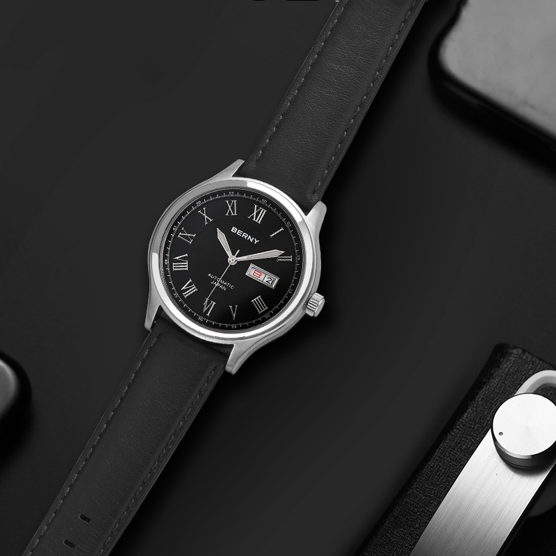 Unlike ordinary watches, this automatic mechanical piece requires no battery, making it eco-friendly and always ready as long as it’s worn. Its vintage-inspired design with Roman numeral display pairs seamlessly with business attire, formal suits, or even a smart casual look. The combination of sapphire glass and mineral back cover ensures durability while showcasing fine craftsmanship. It’s not just a watch—it’s a companion for every moment you want to make count.
