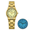 This golden ladies’ quartz watch is more than just a timekeeper — it’s a statement of elegance and reliability. With its luminous dial, durable build, and timeless design, it’s an essential accessory for women who appreciate both style and function. Step out with confidence and let this watch shine on your wrist.