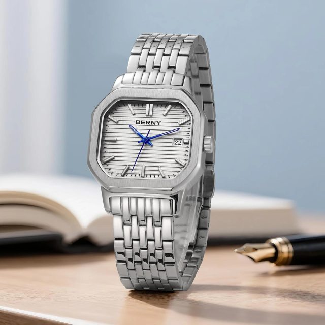 BERNY Watches for Men Fashion Casual Date Luminous Quartz Dress Men's Watch Elegant Rectangle Dial Calendar Business Wristwatch