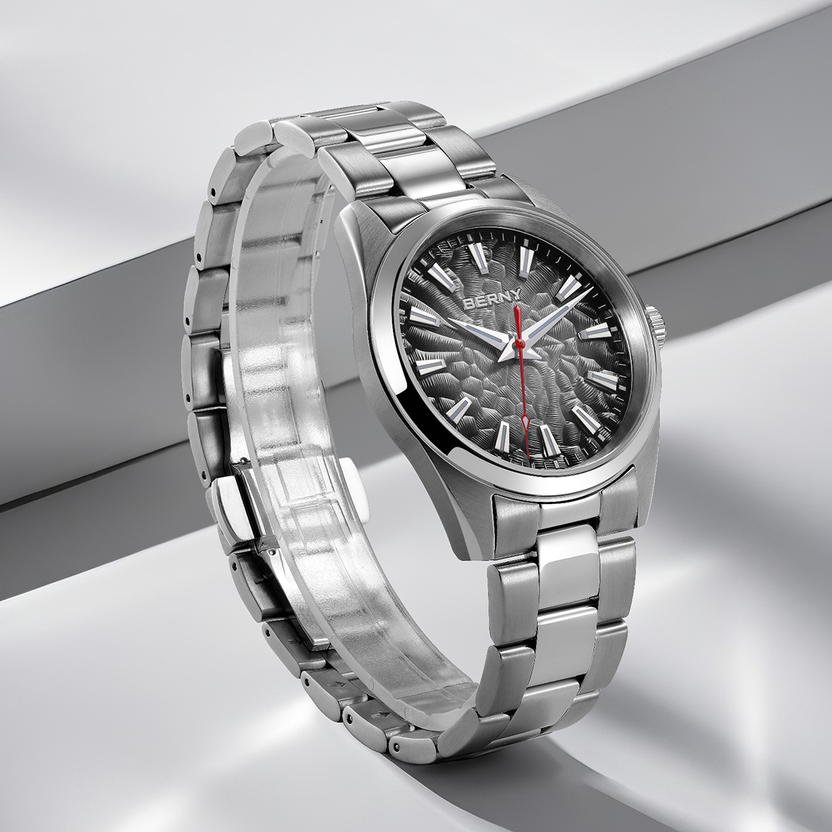 This watch is more than just a stylish accessory—it’s built to perform. Powered by a reliable Miyota quartz movement, it ensures accurate timekeeping you can depend on. The sapphire crystal glass with anti-reflective coating provides outstanding clarity and protection from scratches, while luminous hands and markers let you check the time even in the dark. The robust stainless steel case and strap give it a solid, comfortable feel, paired with a secure butterfly clasp for a refined touch. With a water resistance of up to 330 feet, it’s ready for daily wear and water activities.