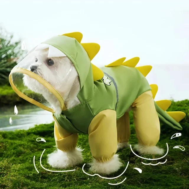 Don’t let the rain stop your adventures. Choose this dinosaur raincoat and let your dog enjoy wet weather with comfort and charm. Treat your furry friend today and watch them strut in style!
