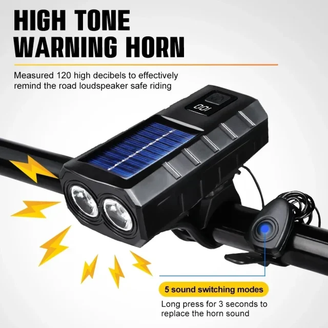 Daily commuters, night riders, and outdoor adventurers who want a single device that provides light, safety, and power backup. This Solar Bike Horn Light is more than a headlight—it’s your reliable cycling companion, keeping every ride brighter and safer.